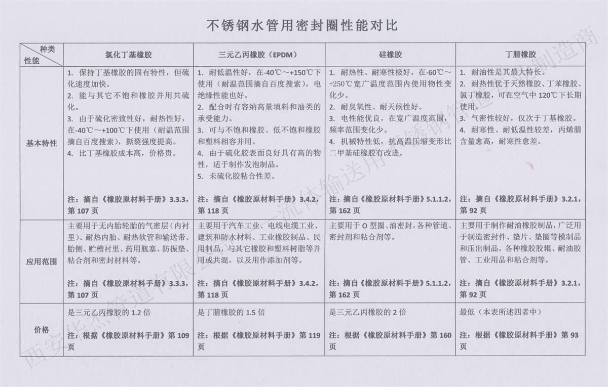 公司采用钢厂原白板料生产不锈钢管材、国产麻豆色视频在线观看;密封圈采用硅橡胶密封圈、食品级密封圈,具体性能详见《不锈钢水管用密封圈性能对比》